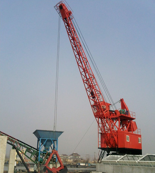 固定式起重机是港口码头前沿一般装载散货和件杂货的通用港口起重机。可配上吊钩或抓斗作业,主要用于海港、河港、也可用于堆场及货站等作业场所。